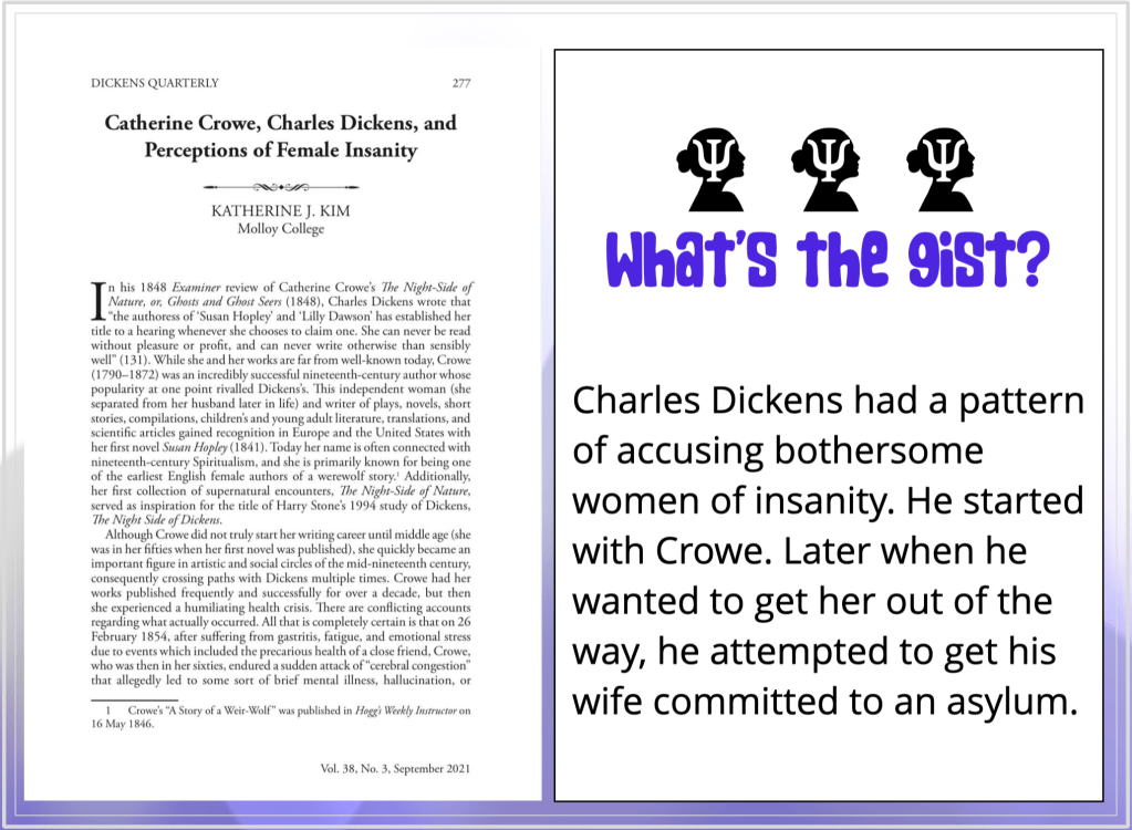 Although Catherine Crowe has largely gotten the cold shoulder from the paranormal community, academics have been writing thoughtfully about her for years. Mainstream journalists, however, continue to fail and get Catherine’s story wrong.