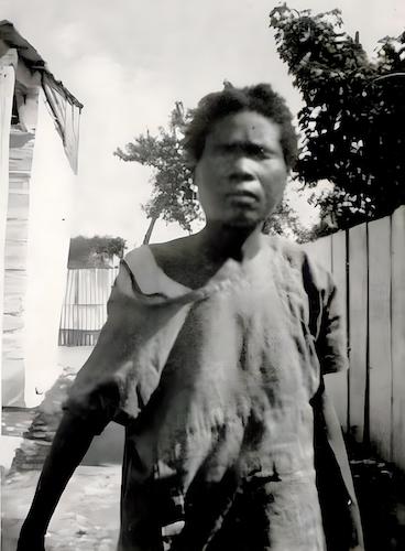 The photo on the left was taken by Zora in 1936. It’s Felicia Felix Mentor in the yard of the asylum as she appeared on the day of their meeting on October 24, 1936. (Another possible zombie, Clairvius Narcisse, is pictured on the right as he appeared in 1985. Some internet sources mistakenly identify the picture of Felicia on the left as Clairvius.)