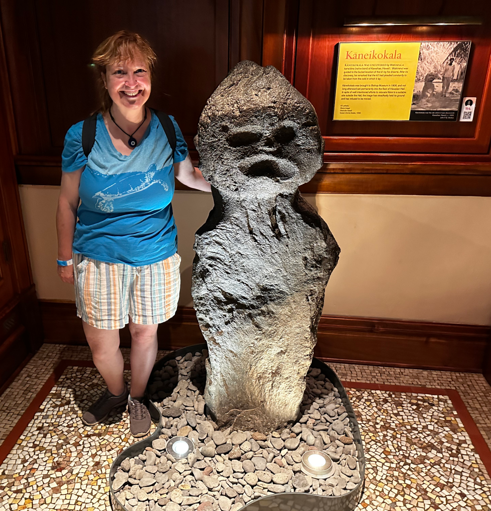 Kāneikokala has been a popular addition to the museum collection ever since. He’s a favorite photo opp for elementary school groups and other visitors. Some of the faithful even bring him offerings.