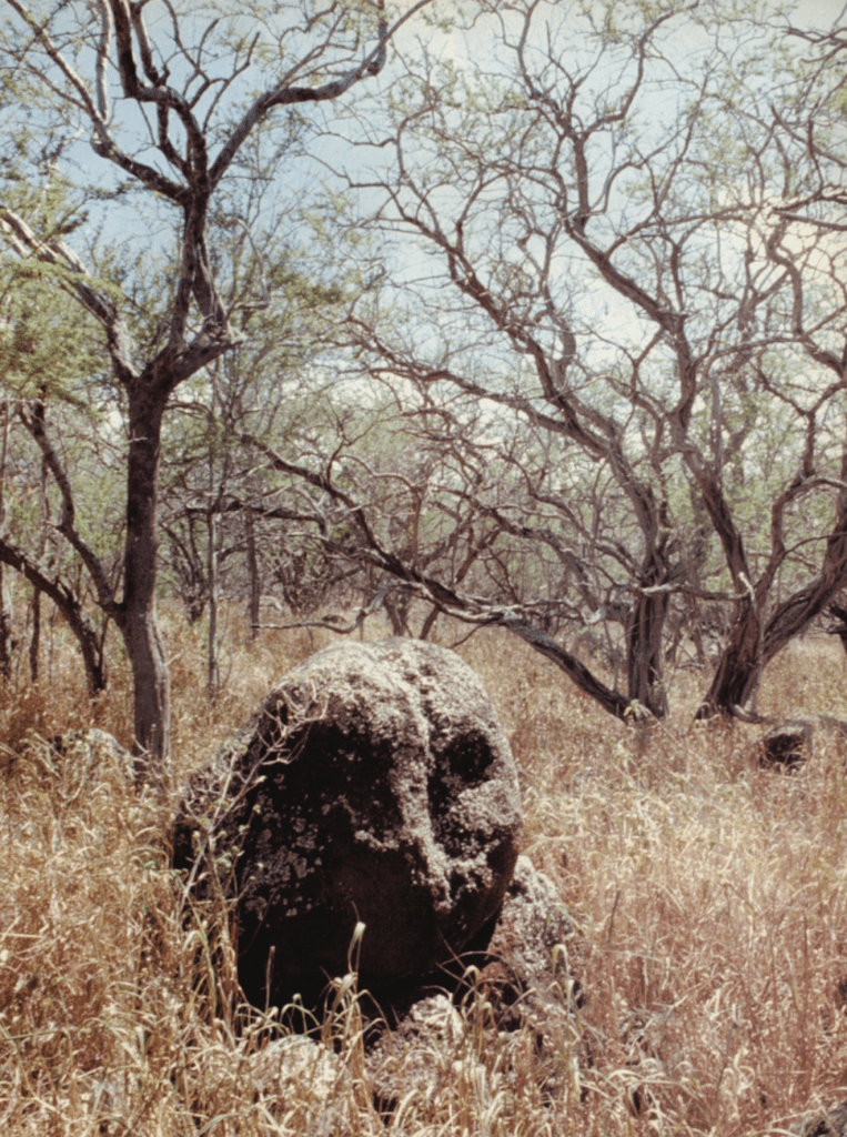 During her search, Lahe nestled on the ground in a sleeping bag was roused from slumber by the racket of dozens of owls roosting nearby. As the dawn broke they flew off in unison. Lahe sat up and found herself staring into two large grey eyes. Momentarily panicked, she attempted to quickly back away, but still stuck in her sleeping bag she only managed to flop over and embed several fallen thorns from the surrounding kiawe trees into her chin. Luckily no one was there to witness it. The large pōhaku sat in a remote valley hidden in plain sight. The beak was carved, but its broad natural depressions strongly resembled the eyes of an owl.