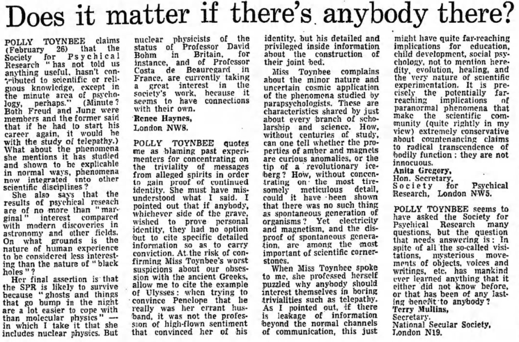 - Enfield Poltergeist: Anita investigated the case, expressing skepticism and suggesting that some phenomena were exaggerated or staged.